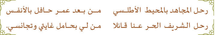 وبمناسبة افتتاح المعهد الشريف الصوفي، اشترك في إنشاد أبيات شعرية كل من العلامة السيد أحمد المشهور بن طه الحداد والعلامة السيد علي أحمد البدوي، والقاضي الفاضل محمد بن شيخ الوائلي والأستاذ الأديب الأريب محمد بن شريف سعيد بن السيد عبد الله البيض، والحبر المؤلف، والشيخ الفاضل عثمان بن أبي بكر اللامي، وكانوا كلهم من المتمسكين بالمنهج السني الصحيح، وهذه الأبيات هي: