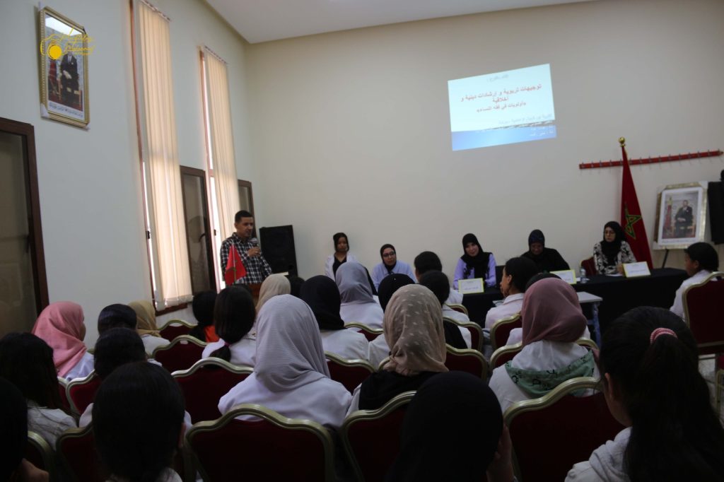 وتطرقت الندوة إلى عدد من المواضيع التي تهم الفتيات حيث تطرقت الأستاذة حادة إلى مكانة المرأة في الإسلام وبعض النصائح والتوجيهات. أما الأستاذة لبنى رقيب فقد قدمت بعض التوجيهات الدينية والتربوية. وفي الأخير، فتح المجال للتلميذات لطرح تساؤلاتهن.