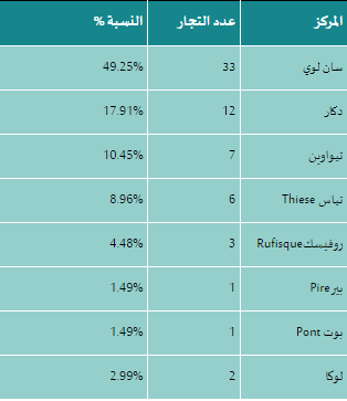 جدول: أهم مراكز التجار المغاربة بالسنغال عام 1905م23