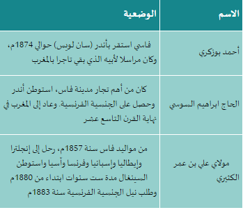 ج- التجار الفاسيون كانت لهم تجارة بالسينغال خلال القرن التاسع عشر و غير مستقرين بها يرجح أنهم من أصل فاس