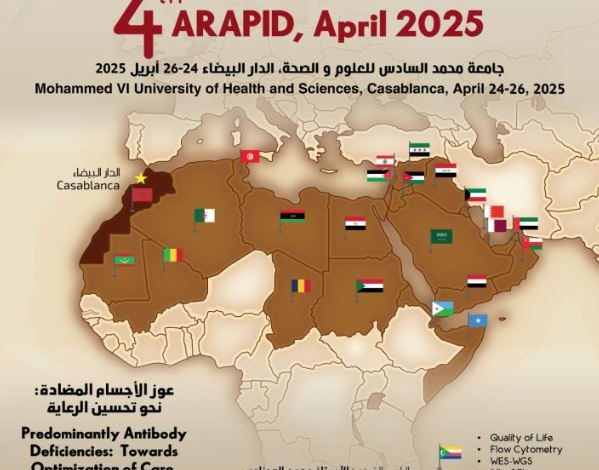 ويُنظم هذا اللقاء العلمي تحت شعار: “عوز الأجسام المضادة: نحو تحسين الرعاية”، بمشاركة نخبة من الخبراء والأطباء والباحثين من عدة دول عربية وإفريقية، إلى جانب ممثلين عن شركاء صناعيين في مجال الصحة والدواء.