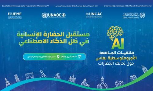 تنظم الجامعة الأورومتوسطية بفاس يومي 27 و28 أبريل ملتقياتها حول تحالف الحضارات تحت شعار “مستقبل الحضارة الإنسانية في ظل الذكاء الاصطناعي”.