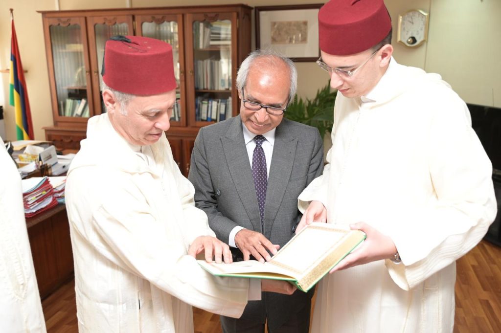 وخلال هذا الاستقبال، الذي يندرج في إطار زيارة الوفد لموريشيوس، أشاد السيد بويسوزون بالرؤية المتبصرة لجلالة الملك محمد السادس، في خدمة المجتمعات الإفريقية من خلال تعزيز الحوار الديني المشترك، والأمن الروحي، والتكوين الديني، والتنمية الاجتماعية. كما أعرب بالمناسبة، عن الرغبة الحثيثة لجمهورية موريشيوس في التعاون الوثيق مع المؤسسة في المجالات ذات الاهتمام المشترك. من جهة أخرى، جرى استقبال الوفد المغربي من قبل نائب رئيس الوزراء، أنور حسنو، بمقر الوزارة الأولى في بورت لويس.