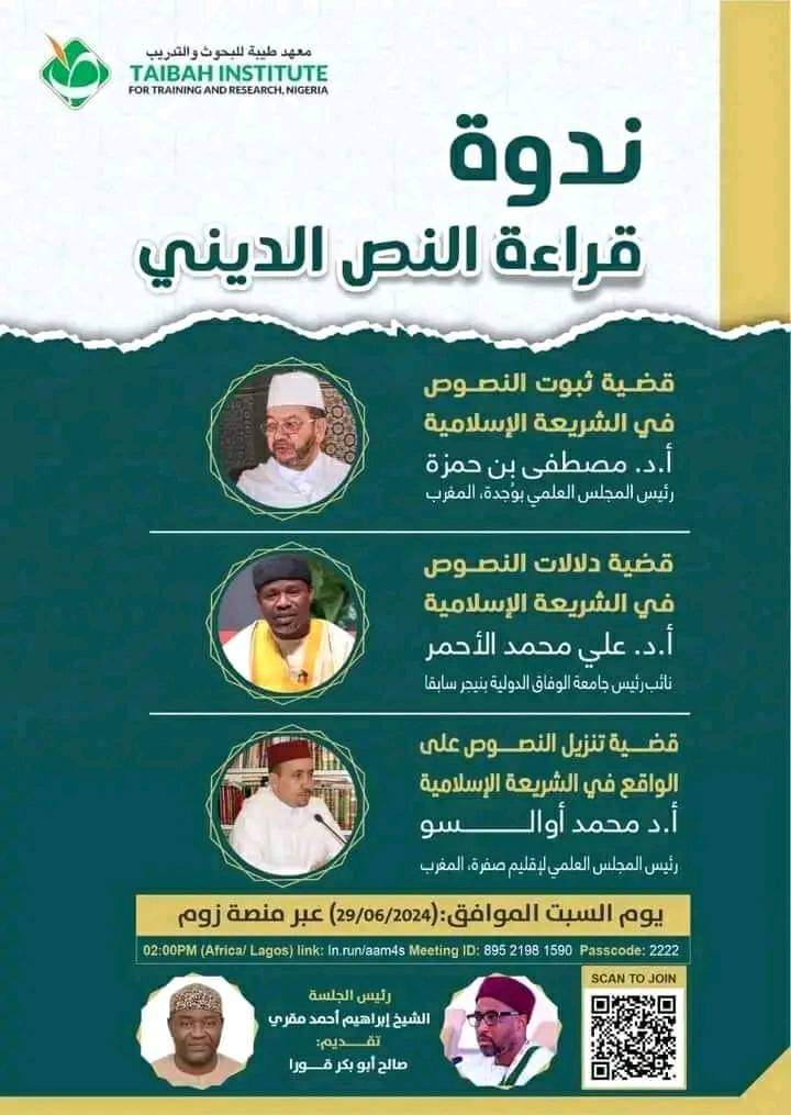 ينظم معهد طيبة للبحوث والتدريب في نيجيريا، يوم السبت 29 يونيو 2024، ندوة حول “قراءة النص الديني “.